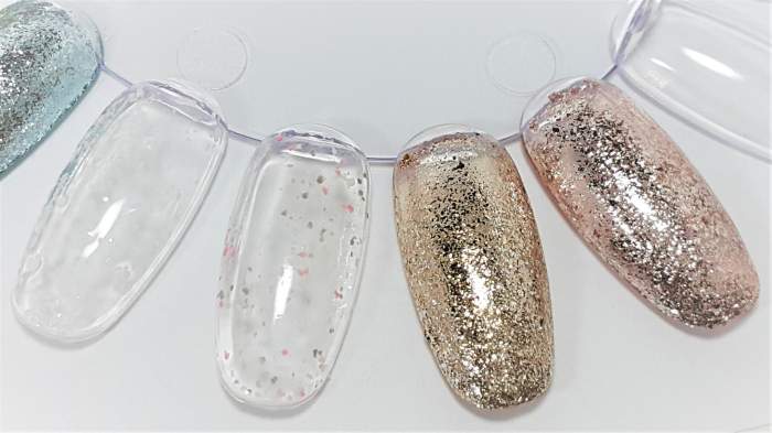 這個系列的色膠是粗細亮粉都有的亮片凝膠